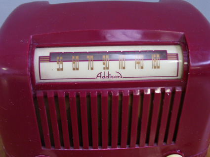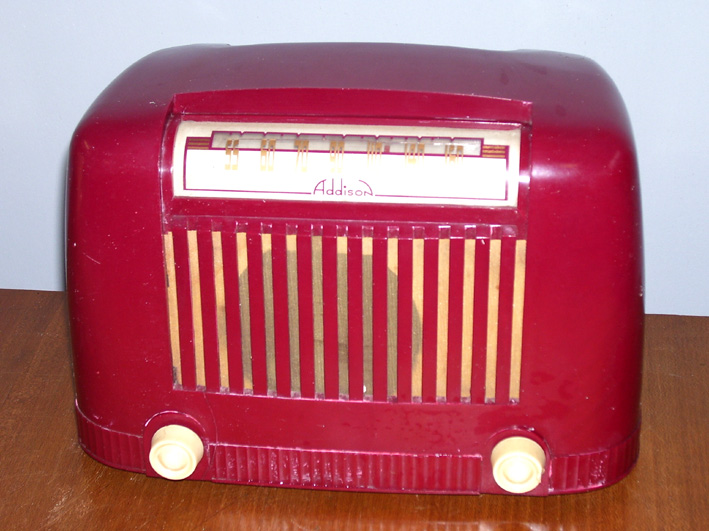 TORONTO CANADA 1950, RADIO ADDISON INDUSTRIES LIMITED.EN BAKELITE ROUGE, 24 x 15 x 34 cm PRIX SUR DEMANDE