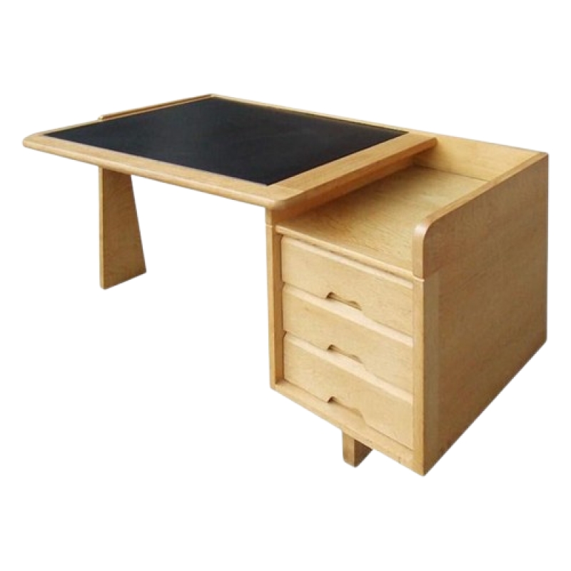 BUREAU ETUDIANT GUILLERME ET CHAMBRON, EDITION VOTRE MAISON, FRANCE 1960. MOD 795 DIMENSIONS EN CM Hauteur 73 Longueur 125 Largeur 73 Diamètre Hauteur assise Retour