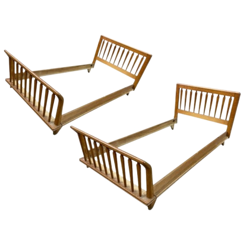 Guillerme et Chambron, 2 lits en chêne, Edition Votre Maison circa 1970.