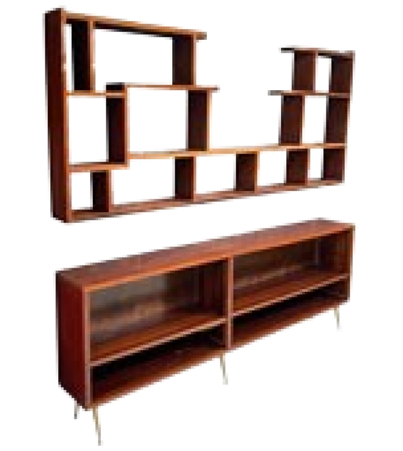 MOD 1555 Grande bibliothèque en noyer et laiton