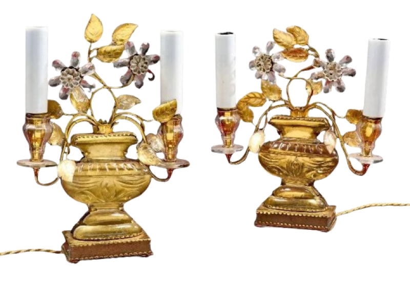 Maison Baguès , paire de charmantes petites girandoles en bronze et verre circa 1950 MOD 2054 Retour SaveSaveSaveEnregistrer