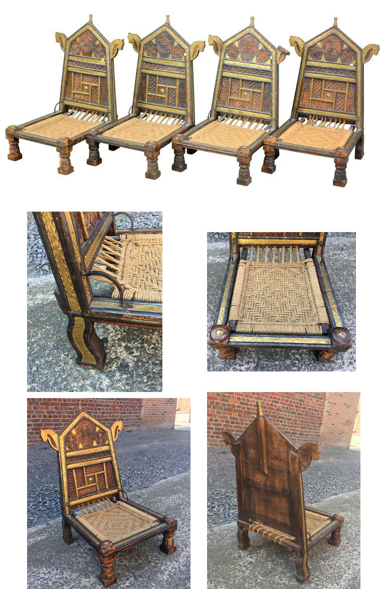 4 Sièges Orientaux Vers 1930/1950 , Bois, Corde Et laiton INS 961 DIMENSIONS EN CM Hauteur 21 et 90 profondeur 56 Largeur 51 Diamètre Hauteur assise Retour page Déco Insolite Enregistrer
