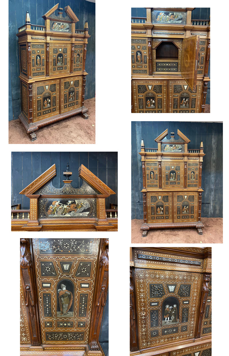 Fantastique Buffet XIX Eme, Néo Renaissance en marqueterie bois précieux, ivoire, métal, pierres dures et marbre.