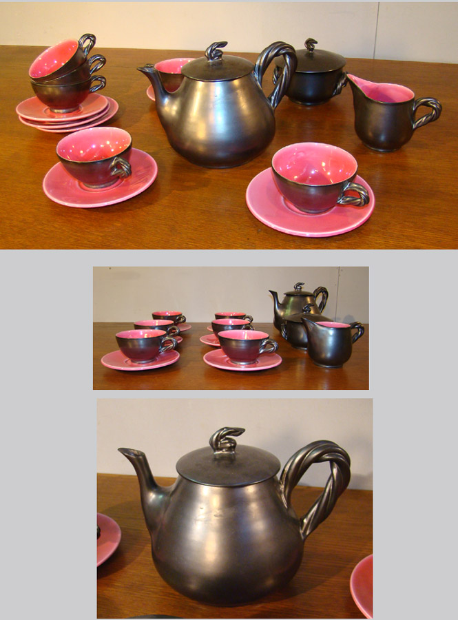 VALLAURIS, SERVICE A CAFE EN CERAMIQUE EMAILLEE VERS 1960 INS234 DIMENSIONS EN CM Hauteur Longueur Largeur Diamètre Hauteur assise Retour page Déco Insolite