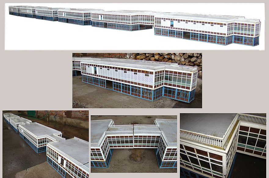ANCIENNE MAQUETTE DE BATIMENTS DE L'AEROPORT DE ZAVENTEM, AEROPORT DE BRUXELLES, EN METAL LAQUE 6 BATIMENTS, 12M DE LONG VERS 1950 / 1960