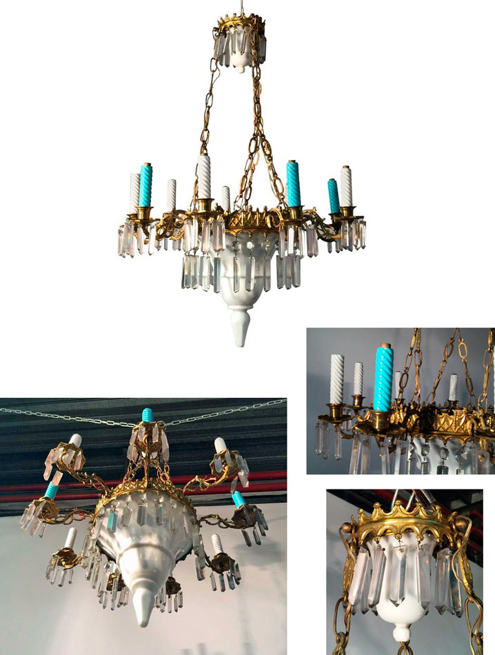 Lustre en céramique, verre et laiton circa 1900. INS 903 DIMENSIONS EN CM Hauteur 80 Longueur Largeur Diamètre 60 Hauteur assise Retour page Déco Insolite SaveSave