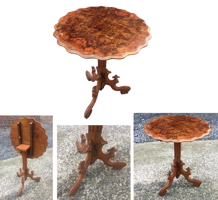Petit guéridon d'appoint en noyer loupe d'amboine fin XIXème.