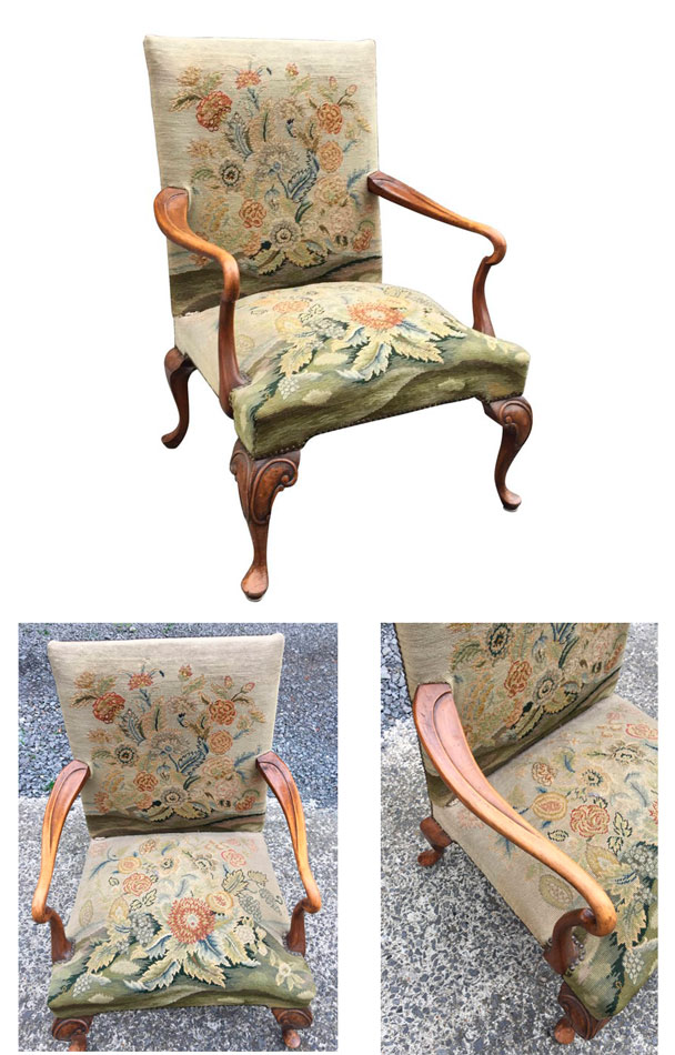 INS 1005 Fauteuil Queen Anne en bois sculpté et tapisserie Featured