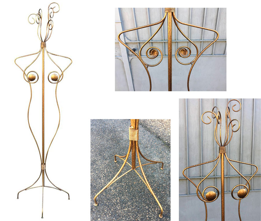 Valet en métal doré vers 1970/1980. INS 1023 DIMENSIONS EN CM Hauteur Longueur Largeur Diamètre Hauteur assise Retour page Déco Insolite