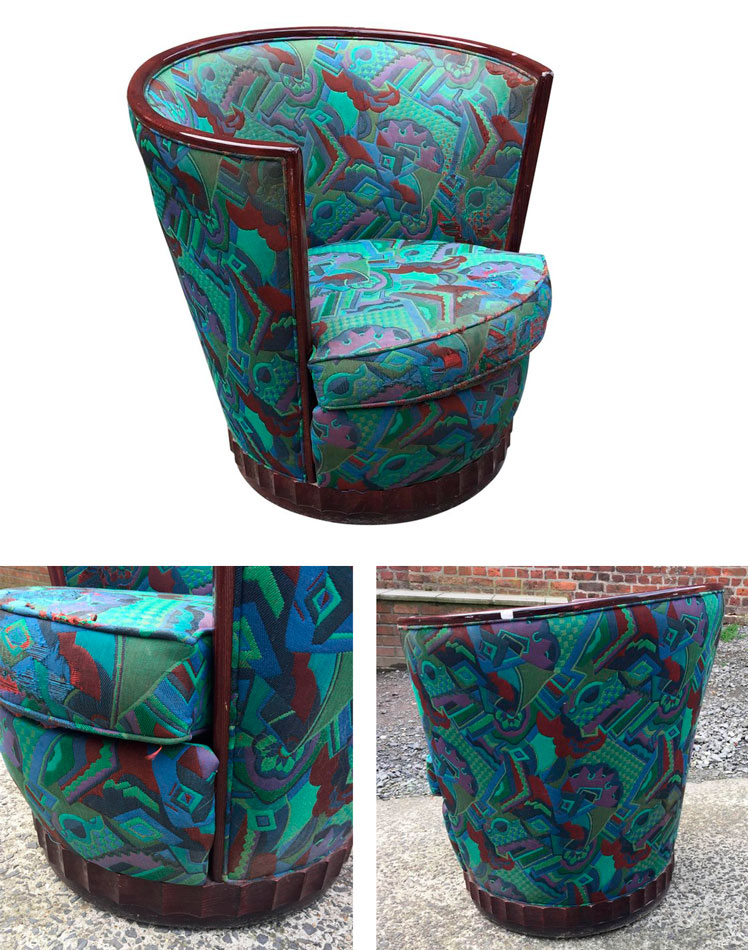 Fauteuil Art Deco vers 1950. AD 1048 DIMENSIONS EN CM Hauteur Longueur Largeur Diamètre Hauteur assise Retour page Art Déco