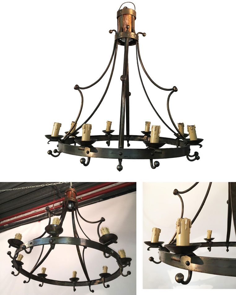INS 1131 Grand lustre néoclassique vers 1950 en acier et laiton. Featured
