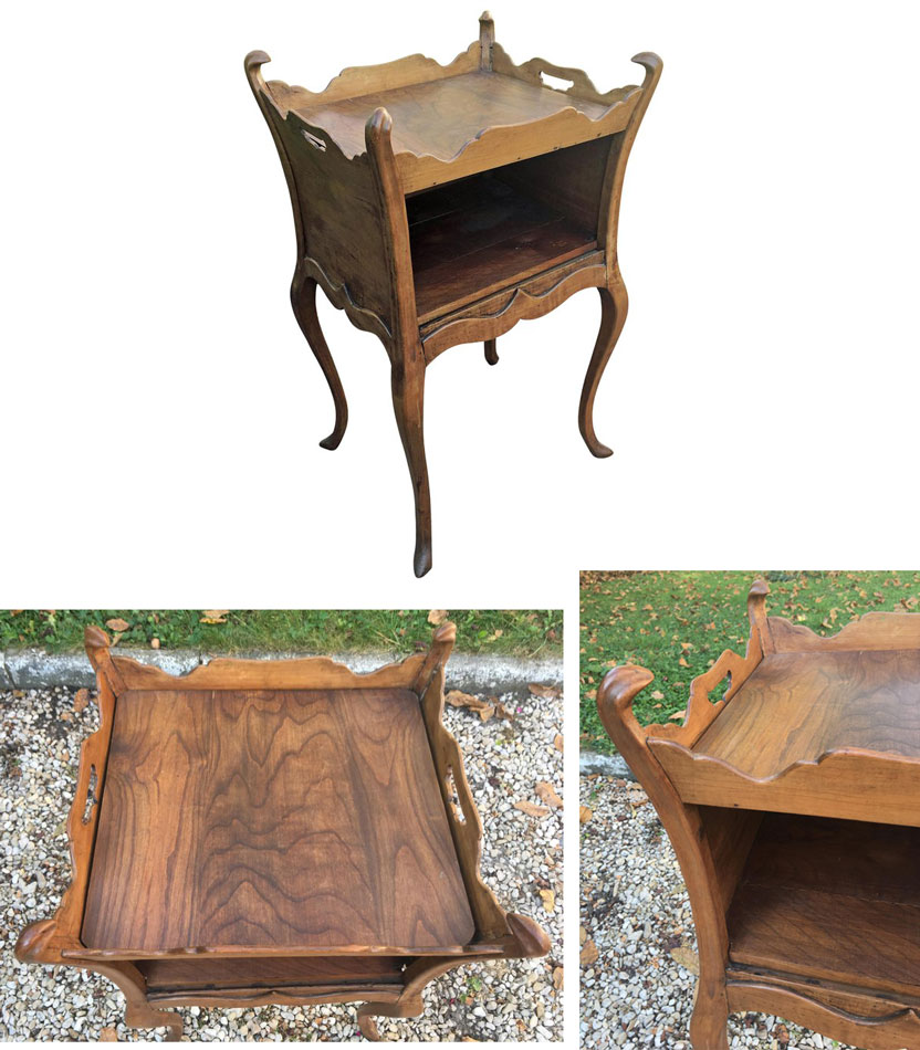 Ancien chevet en merisier de style Baroque circa 1900 INS 1142 DIMENSIONS EN CM Hauteur Largeur Profondeur Diamètre Hauteur assise Retour page Déco Insolite