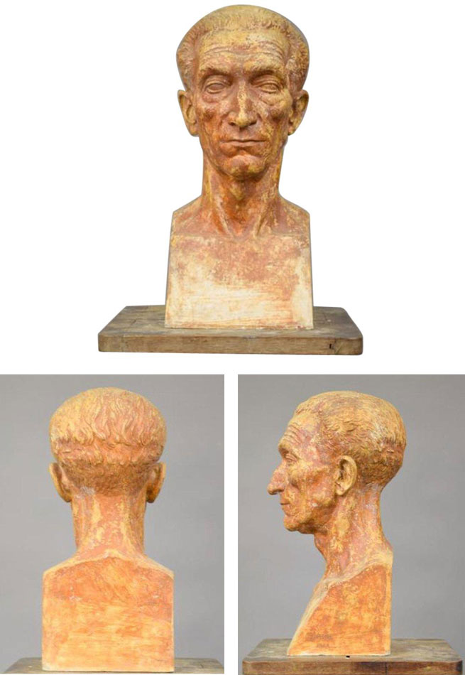 Ernestine SIRINE-REAL (1899-1994) "Buste". Platre patiné, signé et daté 44.