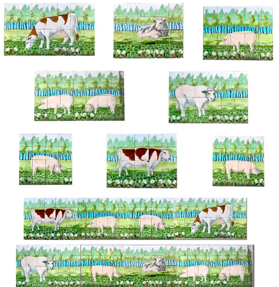 Desvres circa 1920, série de 8 panneaux en céramique provenant d'une ancienne boucherie.