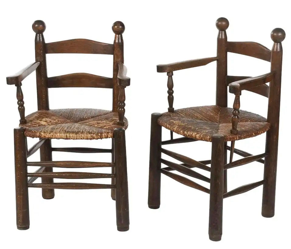 Paire de chaises brutalistes dans le style de Charles Dudouyt circa 1940. INS 1292 DIMENSIONS EN CM Hauteur 85 Largeur 47 Profondeur 47 Diamètre Hauteur assise Retour page Déco Insolite