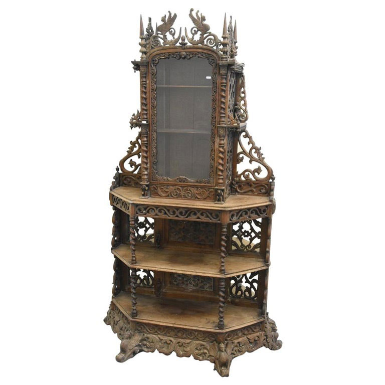 Vitrine En Chêne Sculpté 19ème à Décor De Personnages