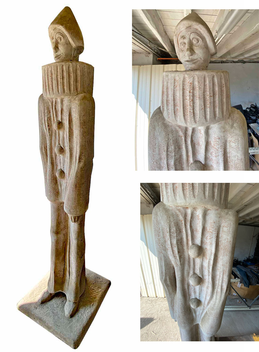 Roger Desserprit (1923-1985), Pierrot, 1967. Scupture originale en ciment patiné.