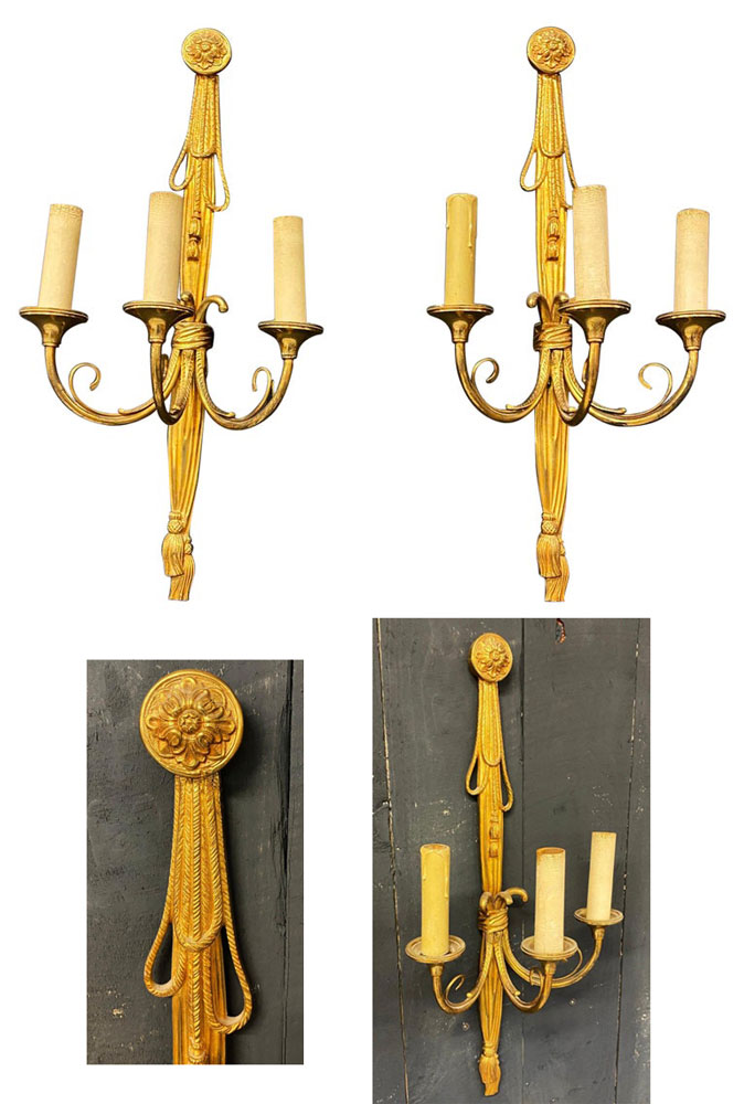 Paire d'appliques en bronze de style Louis XVI INS 1493 DIMENSIONS EN CM Hauteur 50 Largeur 25 Profondeur 15 Diamètre Hauteur assise Retour page Déco Insolite