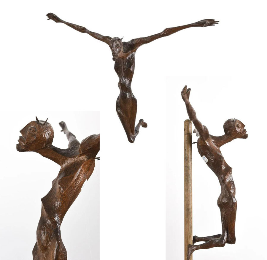 Vincent Gonzalez (1928-2019) Crucifixion., Chêne Sculpté Circa 1950/1960 INS 1486 DIMENSIONS EN CM Hauteur 58 Largeur 40 Profondeur 20 Diamètre Hauteur assise Retour page Déco Insolite