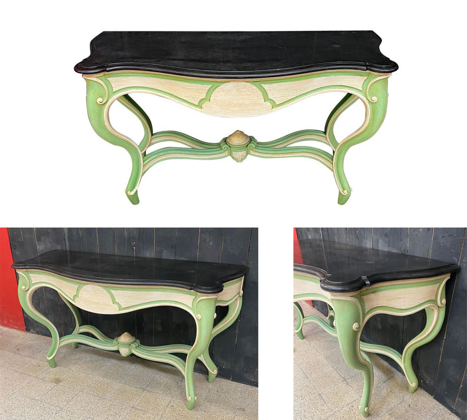 • INS 1954 console du 19e siècle en bois patiné et marbre vers 1880