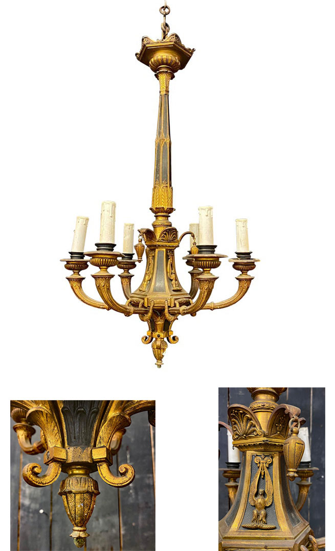 Lustre néo romantique en bronze à 2 patines, circa 1900.