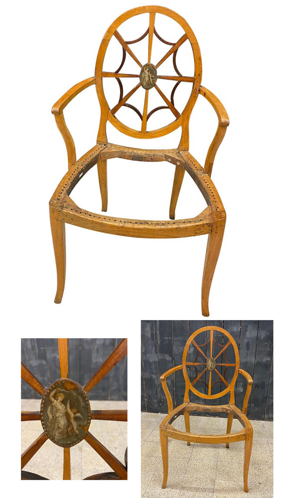 Fauteuil à décor de scène peint en médaillon, Angleterre XIXème. INS 1602 DIMENSIONS EN CM Hauteur 91 Largeur 51 Profondeur 51 Diamètre Hauteur assise 42 Retour page Déco Insolite