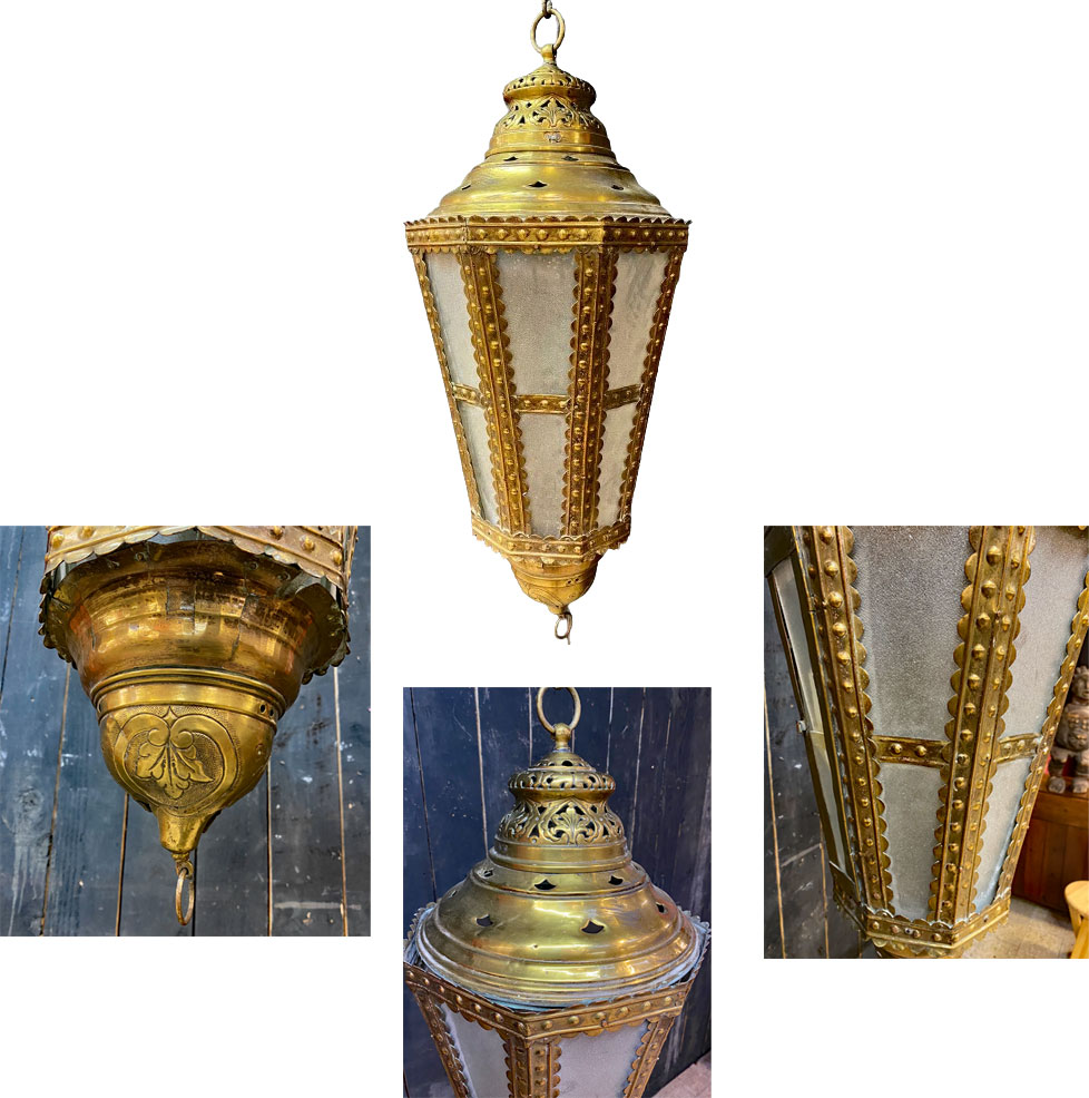 Ancienne Lanterne Flamande en cuivre et verre du 18ème Siècle. Non Electrifiée INS 1671 DIMENSIONS EN CM Hauteur 85 /185 Largeur Profondeur Diamètre 35 Hauteur assise Retour page Déco Insolite