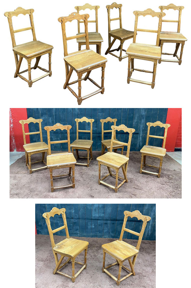 INS 1731 6 chaises de montagne brutalistes en orme circa 1900