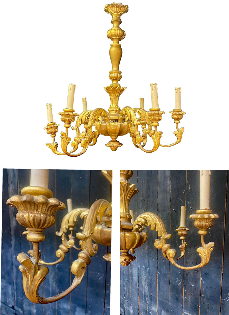 Lustre néo-baroque en bois doré circa 1950 INS 1773 DIMENSIONS EN CM Hauteur 70 Largeur Profondeur Diamètre 70 Hauteur assise Retour page Déco Insolite