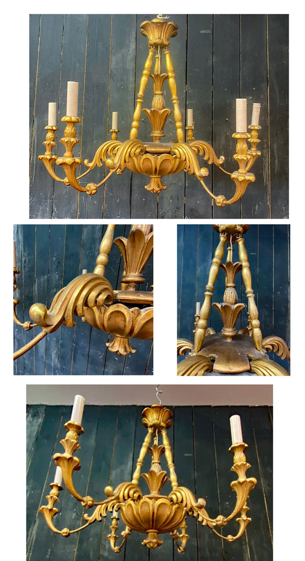 INS 1774 Lustre néo-baroque en bois doré circa 1950