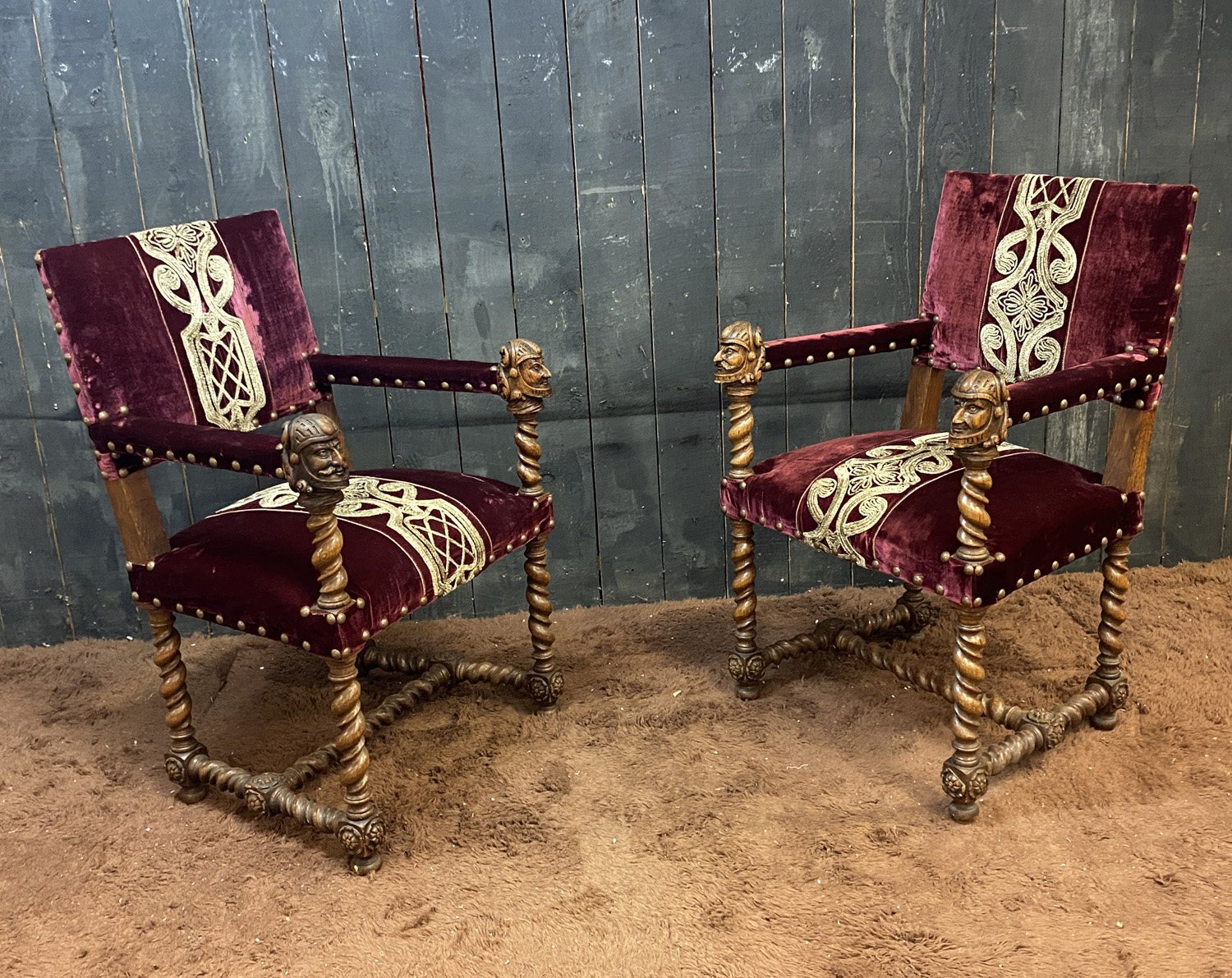 Paire De Fauteuils Style Louis XIII en chêne INS 1831 DIMENSIONS EN CM Hauteur Largeur Profondeur Diamètre Hauteur assise Retour page Déco Insolite