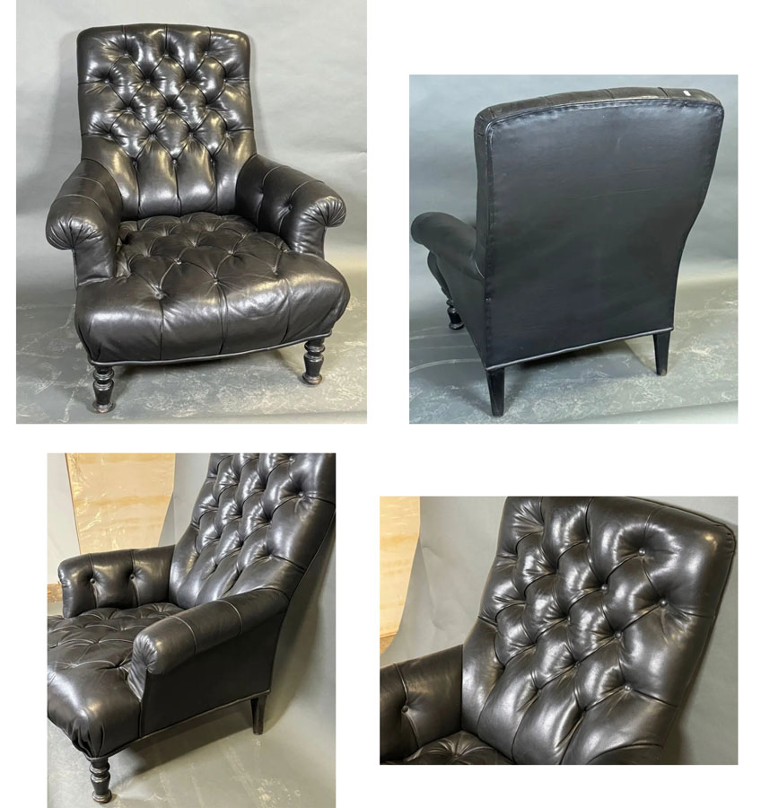 INS 1850 Fauteuil club Chesterfield en cuir, vers 1930/1950