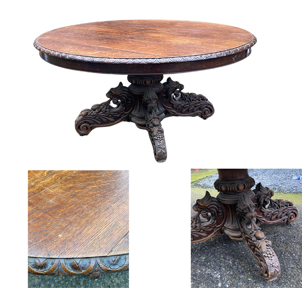 INS 1877 Grand Guéridon Ou Table En Chêne Massif De Style Louis XIII.