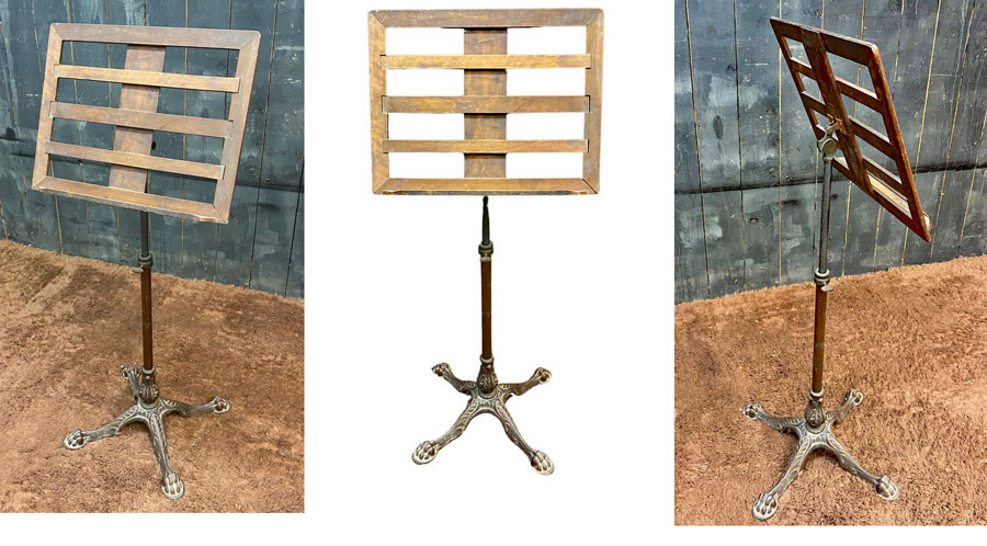 Georges Gay, pupitre en noyer et fonte, Edition Soleil circa 1930. Réglable en hauteur et inclinaisons