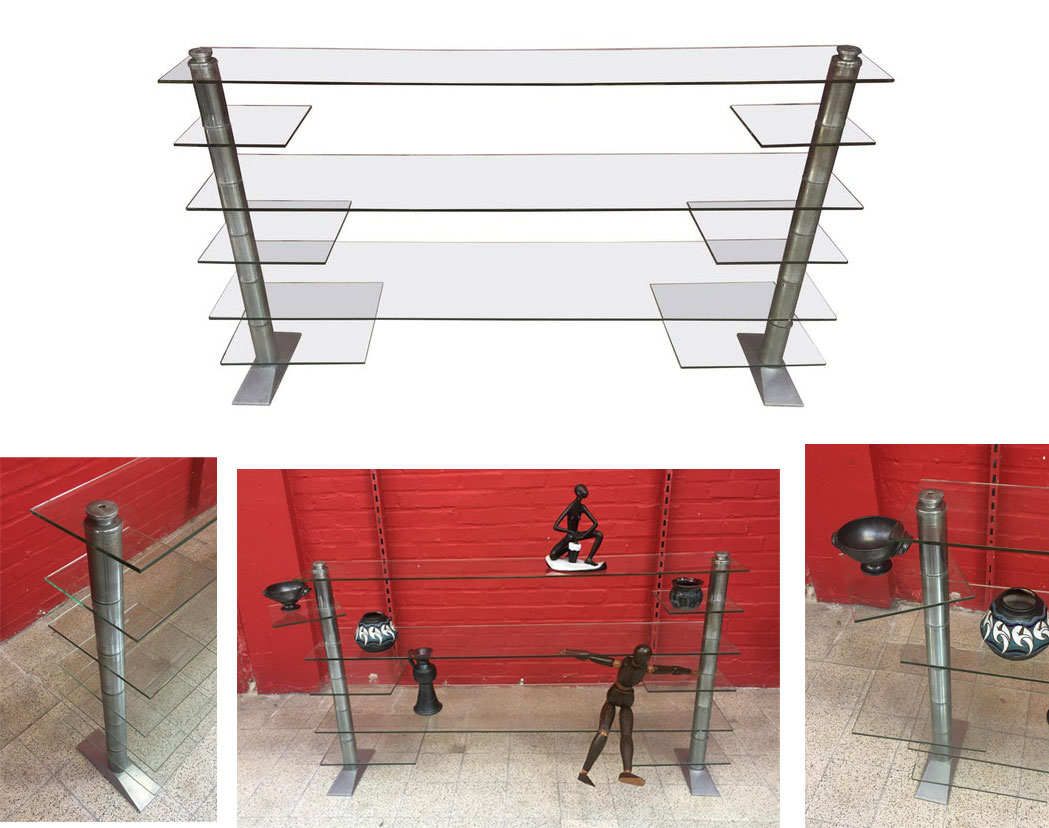Ancienne étagère de magasin, période Art déco, acier et verre de sécurité, vers 1930