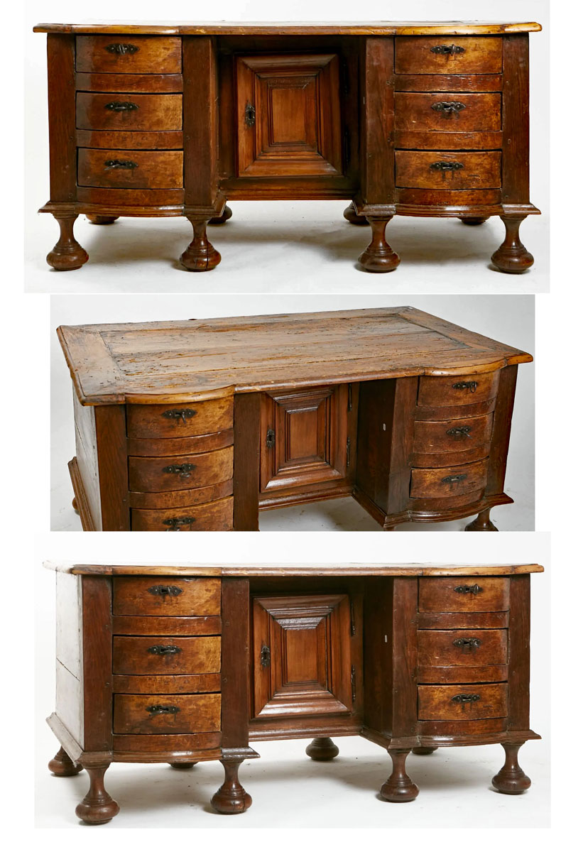 Bureau à caissons en bois fruitier et chêne, dit Mazarin, époque Louis XIV vers 1700