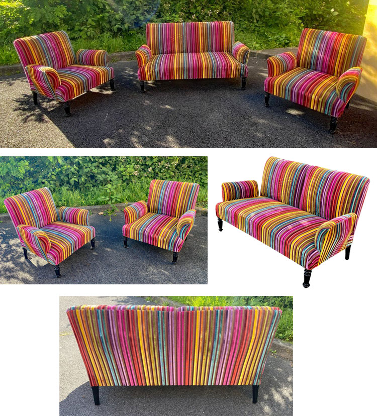 • AD 1917 Salon Art Nouveau composé de 6 sièges, 1 banquette, 2 fauteuils et 3 chaises circa 1900.