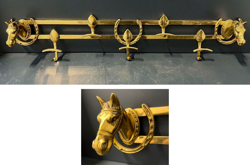 INS 1964 Portemanteau Mural En Laiton A Décor De Tête De Cheval