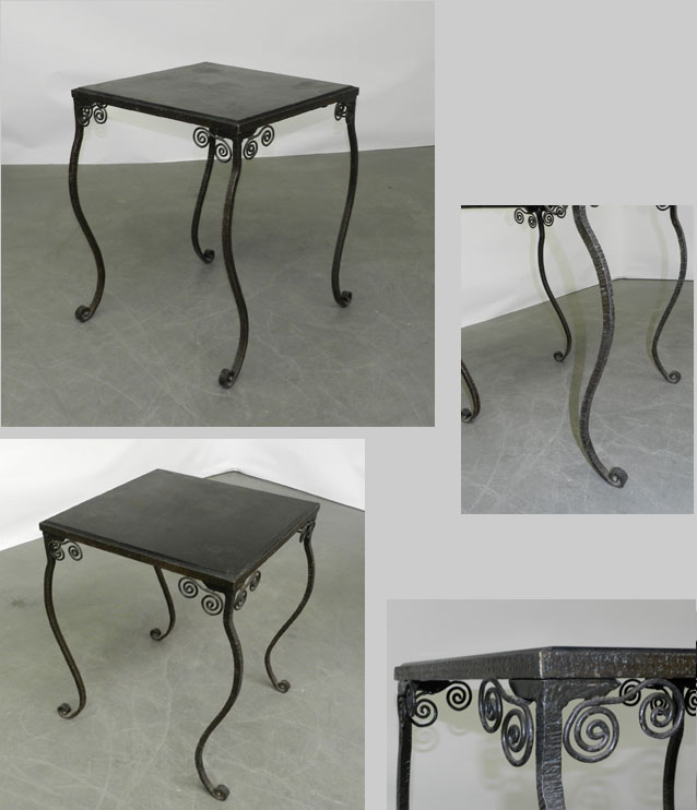 GUERIDON EPOQUE ART DECO EN FER FORGE, PLATEAU EN PIERRE AD 458 DIMENSIONS EN CM Hauteur 65 Longueur 51 Largeur 51 Diamètre Hauteur assise Retour page Art Déco
