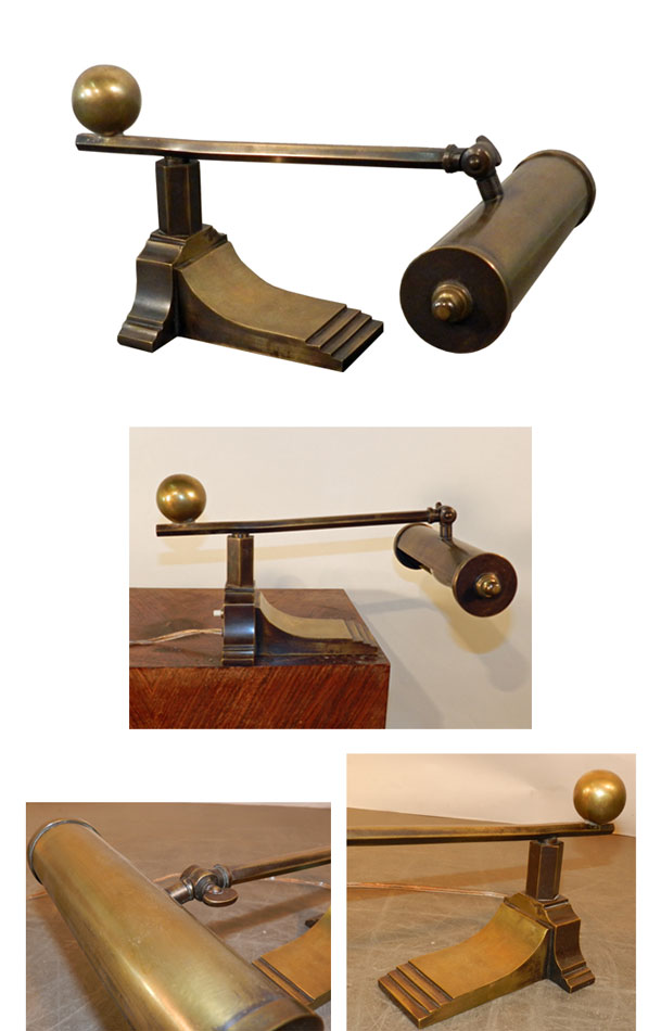 LAMPE DE PIANO, OU DE LECTURE EN BRONZE ET LAITON EPOQUE ART DECO, VERS 1930 AD 858 DIMENSIONS EN CM Hauteur 15 Longueur 34 Largeur 12 Diamètre Hauteur assise Retour page Art Déco