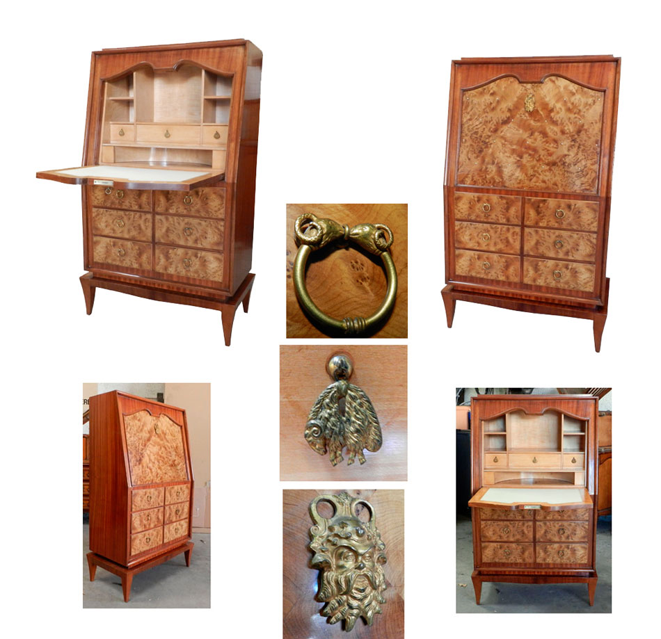 RENE DROUET (attribué à ) SECRETAIRE EPOQUE ART DECO , EN ACAJOU ET LOUPE DE THUYA.pastilles d'ivoire, INTERIEUR EN PLACAGE DE SYCOMORE.