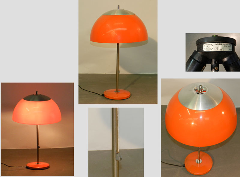 LAMPE 1970 , PLASTIQUE ET METAL CHROME, EDITION UNILUX MOD 469 DIMENSIONS EN CM Hauteur Longueur Largeur Diamètre Hauteur assise Retour page Moderne