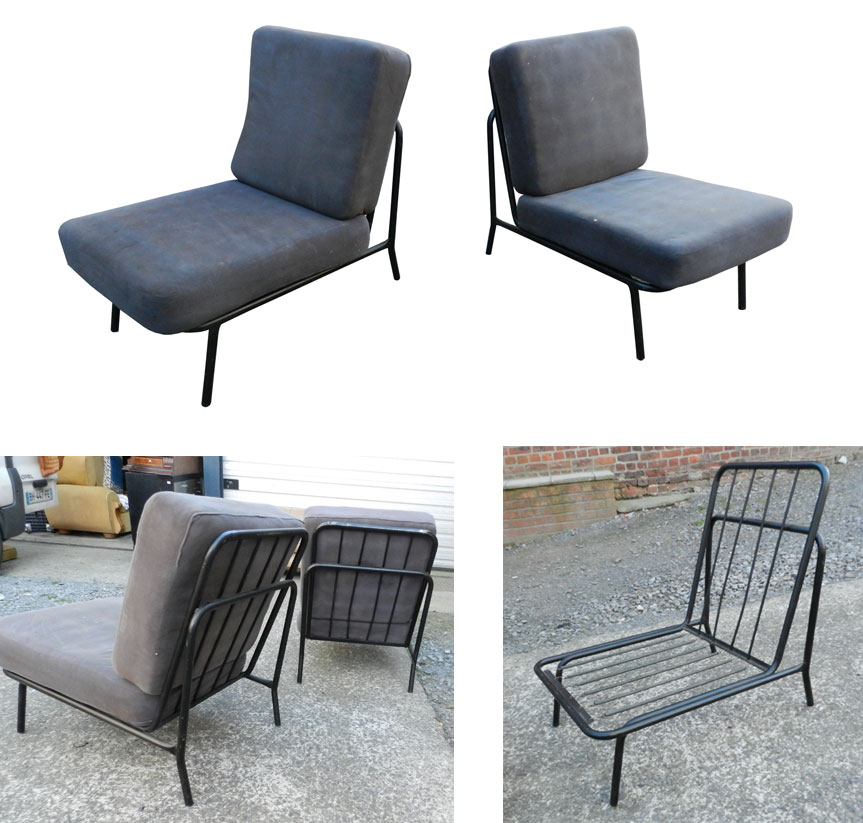 PAIRE DE FAUTEUILS 1960 A STRUCTURE EN METAL LAQUE, GARNITURE D'ORIGINE MOD 863 DIMENSIONS EN CM Hauteur Longueur Largeur Diamètre Hauteur assise Retour