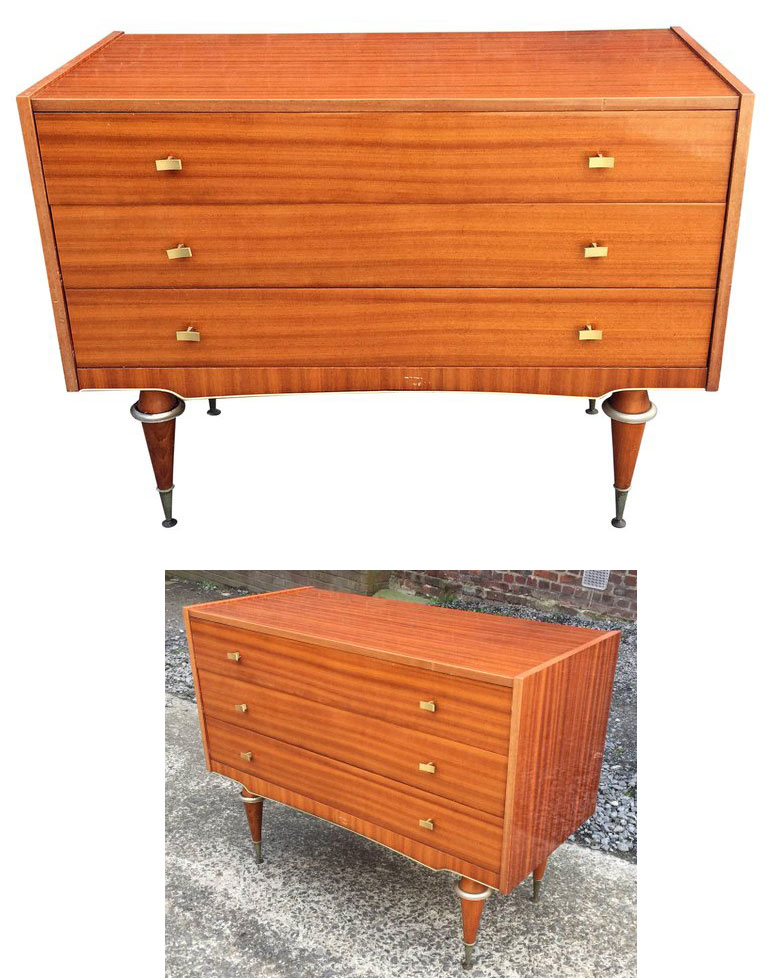 • AD 1973 Elégante commode époque Art Deco, palissandre et bronze nickelé