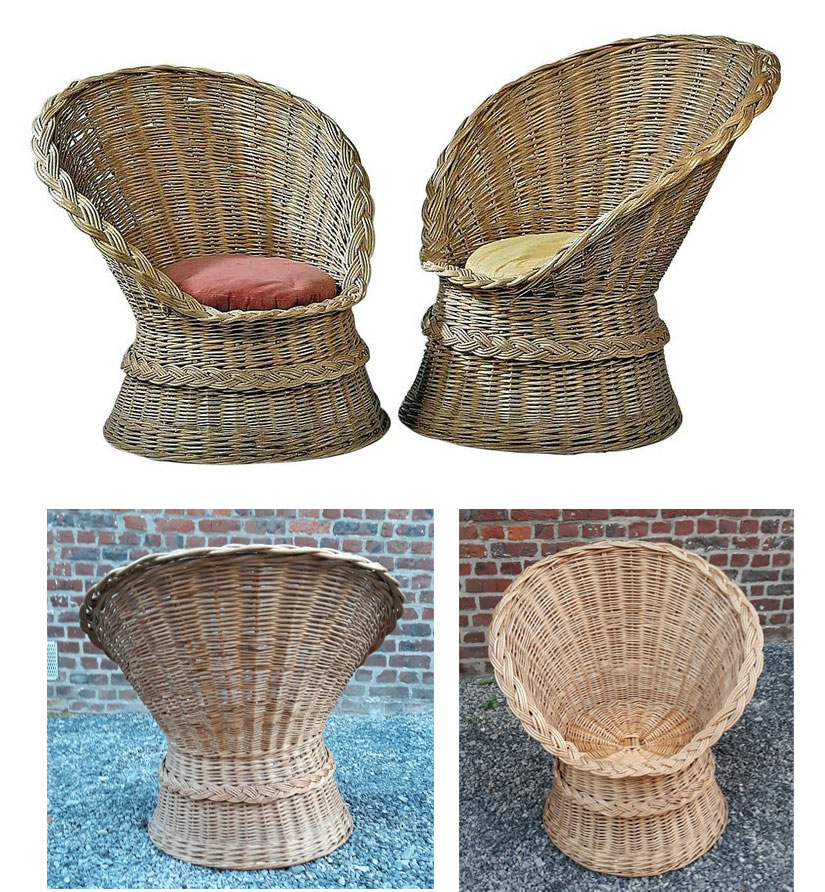 MOD 1172 Deux fauteuils en rotin circa 1960.