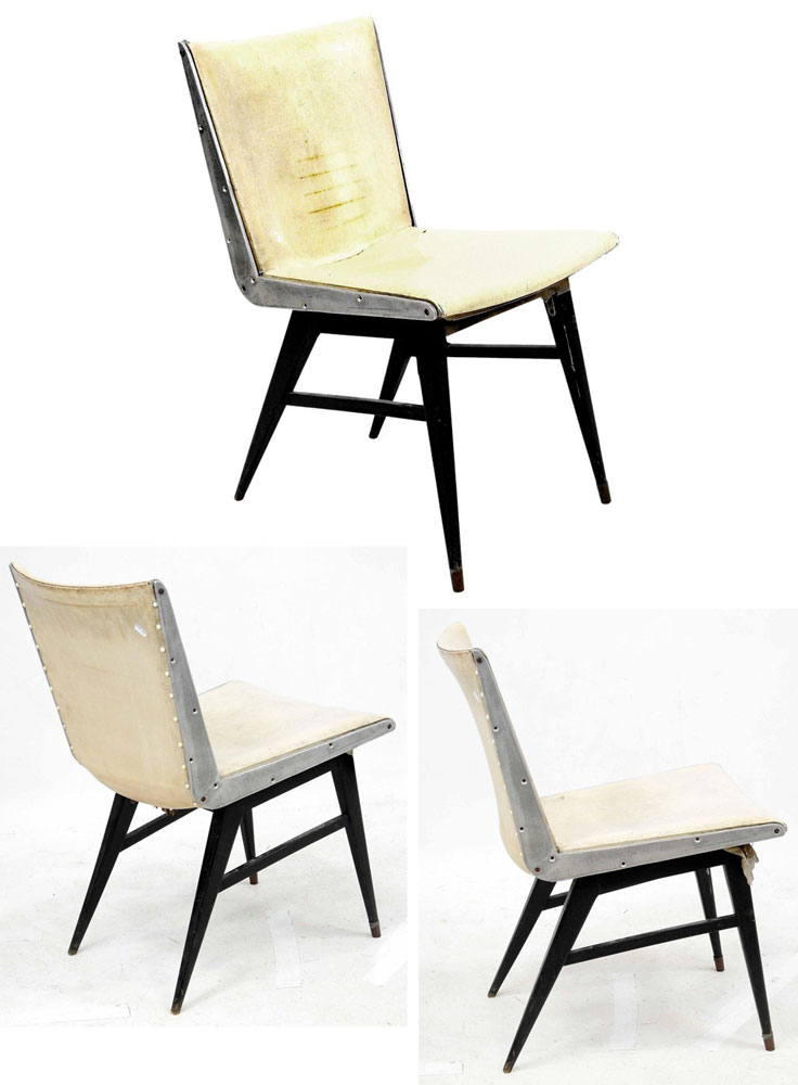 Chaise en bois noirci et aluminium dans le style de Jens RISOM. Prototype probable des années 1950-1960.
