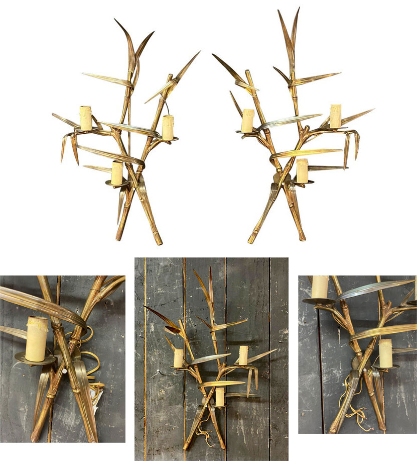 MOD 1752 Maison Charles, paire d'appliques en bronze imitant le bambou Featured