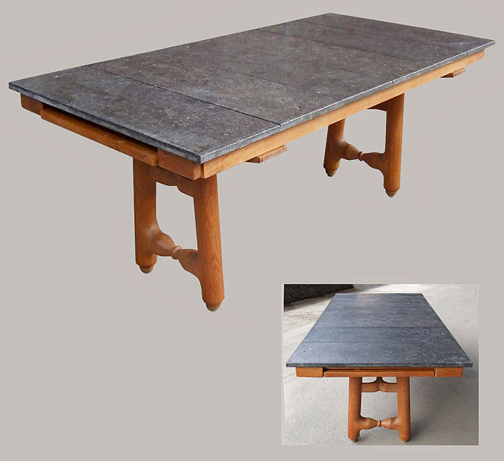 Guillerme et Chambron table "Gustave", chêne doré, plateau en pierres de Soignies
