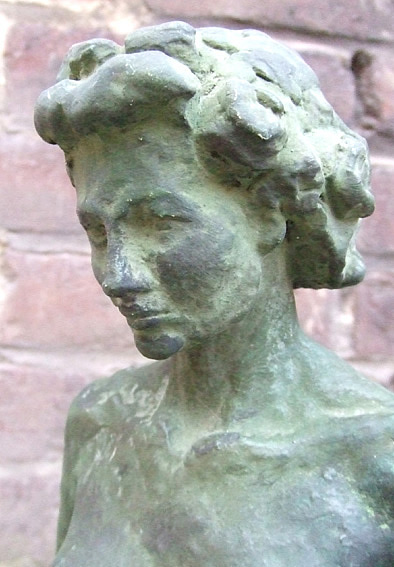 EVE ? SCULPTURE EN PLATRE PATINE VERTE REPRESENTANT UNE FEMME NUE AVEC UNE POMME DANS LA MAIN, NON SIGNEE, VERS 1940/1950