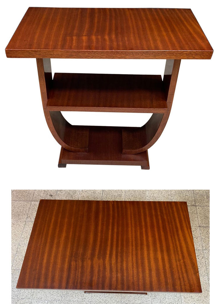 Petite table guéridon Art Déco en acajou vers 1930 entièrement restaurée. AD 1727 DIMENSIONS EN CM Hauteur 61 Largeur 65 Profondeur 38 Diamètre Hauteur assise Retour page Art Déco